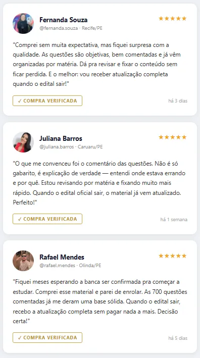 Com nosso material, você se prepara para acertar entre 81% e 96% delas, focando no que realmente importa.