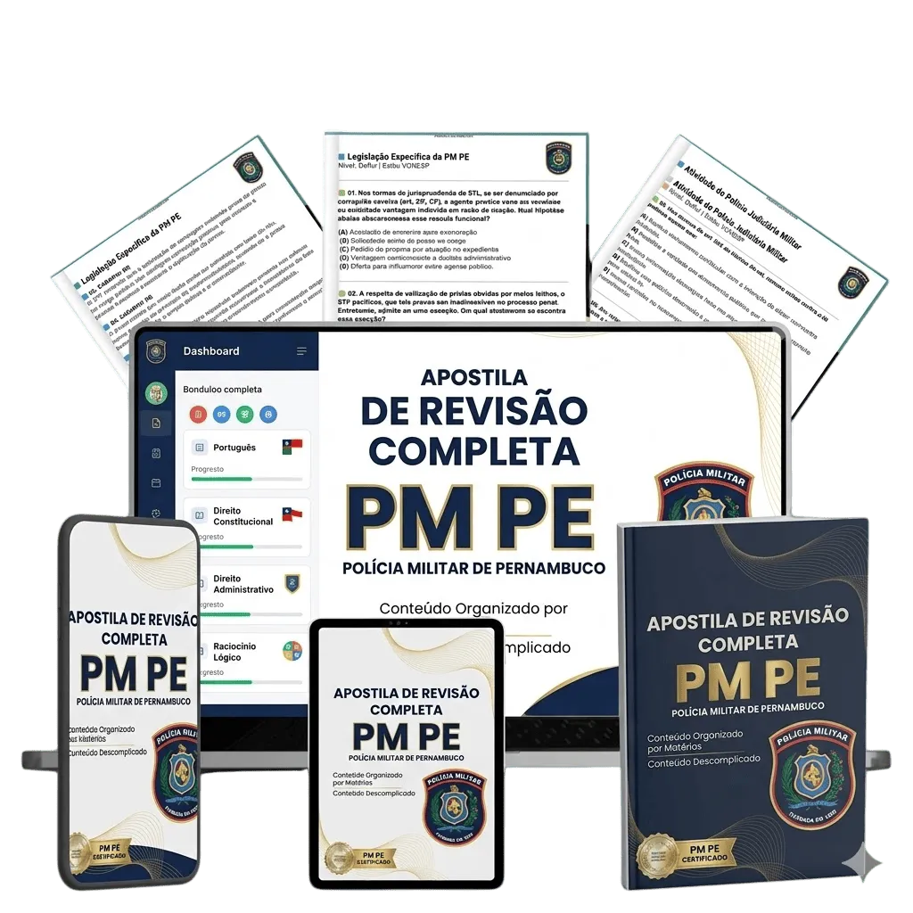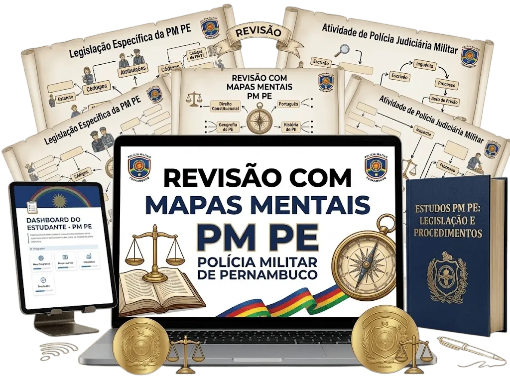Teoria geral dos Direitos Humanos, DUDH, abuso de autoridade, tortura, Lei Maria da Penha, racismo, crimes ambientais, crimes hediondos, Lei de Drogas e Estatuto dos Militares de PE — e muito mais, cobrindo todo o edital após publicado.